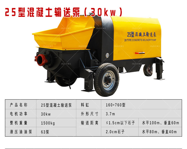 二次结构浇筑泵参数 型号:50泵 垂直输送距离:15m 水平输送距离:30m 流量:7方/h 电机功率:2.2kw 重量:290kg